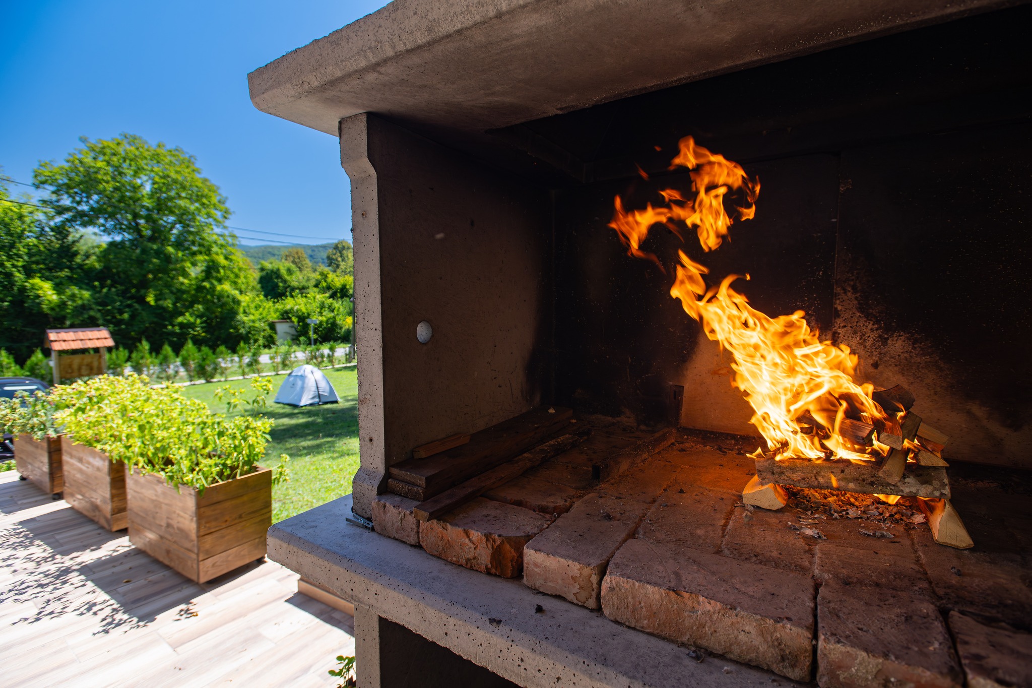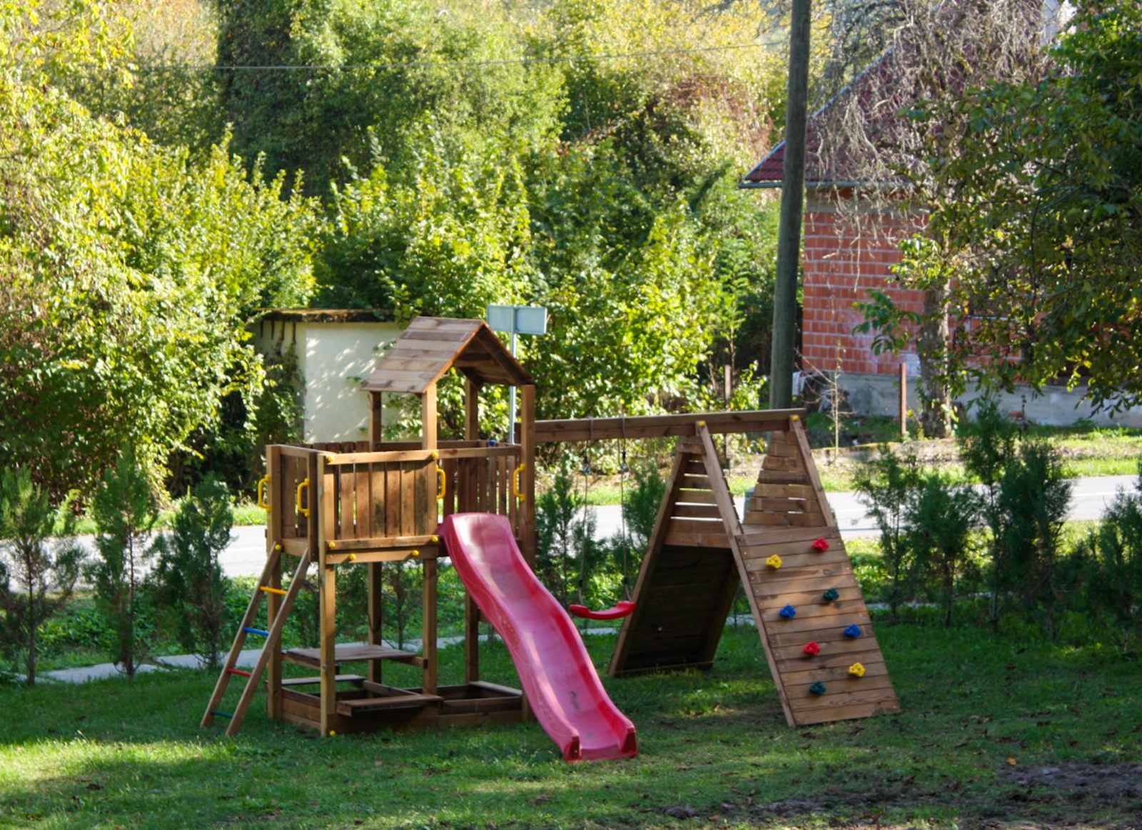 Za ljubitelje druženja i gastronomije, na terasi se nalazi veliki roštilj, idealan za večernja okupljanja i uživanje u obrocima na otvorenom. Najmlađi gosti mogu uživati na dječjem igralištu, koje pruža sigurno i zabavno mjesto za igru na otvorenom.